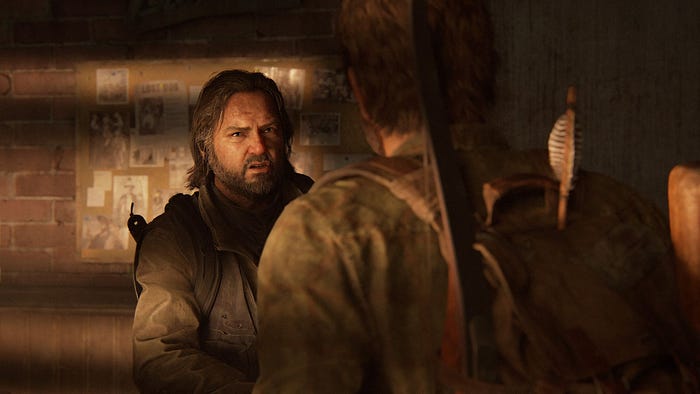 Après un twist scénaristique, le joueur est propulsé 20 ans après et retrouve Joel ainsi qu’une femme prénommée Tess avec qui il a réussi bon gré mal gré à survivre dans ce monde devenu chaos. En effet, le nombre d’infectés par le virus — créant des champignons et polluant l’air — est désormais hors de contrôle, des postes de garde sont dressés et de strict couvre-feux empêchent les civils de se balader librement. Bien sûr, le trafic de rations, de nourriture, d’armes et d’objets divers est important et chacun fait ce qu’il peut pour survivre et se tenir loin du virus. Le joueur comprend que Joel et Tess sont impliqués dans un trafic et doivent poursuivre un homme appelé Robert.