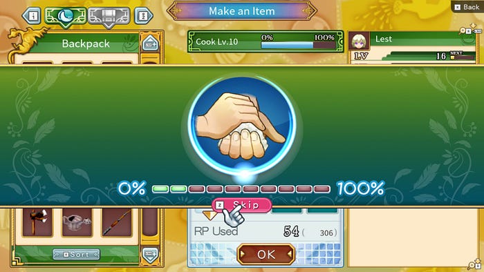 Toutes ces activités sont au centre de Rune Factory 4 puisqu’elles permettront non seulement d’améliorer votre équipement personnel, mais aussi d’accomplir des quêtes diverses et variées. Une personne de la ville pourra par exemple vous demander de lui donner 10 pommes de terre, une autre souhaitera un poisson bien particulier ou un plat cuisiné spécifique, une autre encore pourra vous demander d’être capable de produire 2 remèdes, etc…