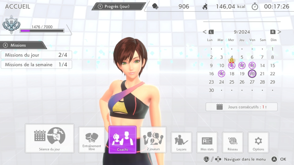 En plus des modes Séance du jour et Entraînement libre, des Missions du jour, Missions de la semaine et Étirements, la démo vous propose d’essayer les nouveaux modes de cet opus :