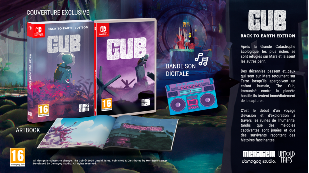 Cette édition physique inclura le jeu The Cub – Back to Earth Edition sur Nintendo Switch, un boîtier spécial, une copie numérique de la bande-son du jeu, ainsi qu’un superbe artbook présentant les concepts réalisés par les développeurs.
