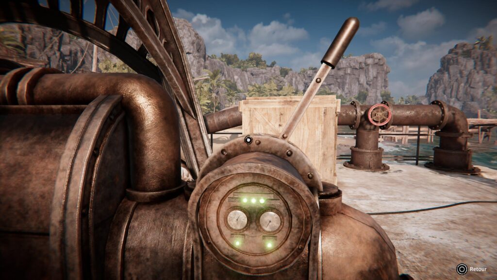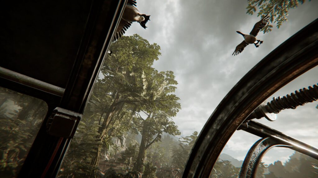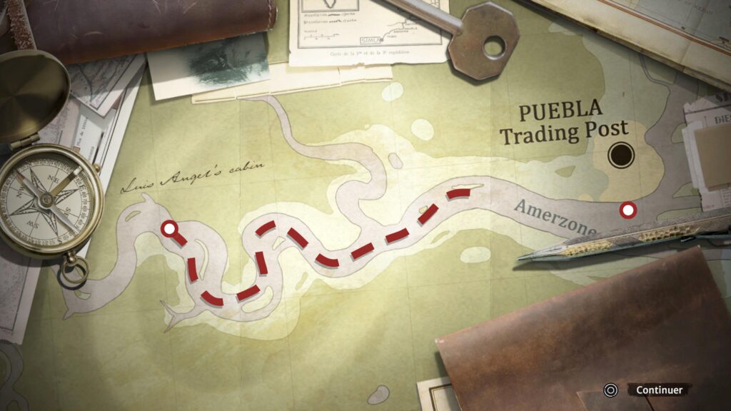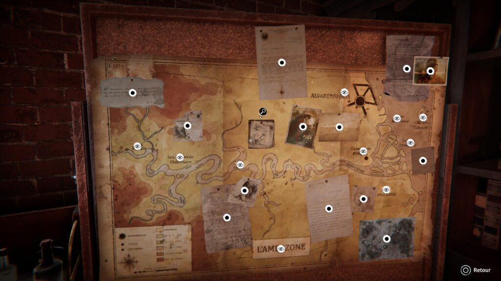 Si vous êtes du genre contemplatif, vous allez adorer l’Amerzone. C’est une aventure quasi sensorielle saupoudrée de visuels forestiers de grande qualité. Les sons vous transportent au fil de l’eau et les cris d’animaux et autres espèces vivantes des marécages vous accompagneront pendant les 7-8h que dure cette aventure. Pour celles et ceux qui n’ont jamais mis les mains sur la première version datant de 1999, l’expérience est immersive tout en proposant une aventure simple sans ennemis ni difficulté aucune. Pas d’armes ni de combats, juste un pointeur, des indices, des énigmes, et le reste appartient à votre imagination. Pour les fins connaisseurs dont je fais partie, ce fût un réel plaisir de revenir sur les traces de l’Amerzone avec ce bon vieil Alexandre Valembois.