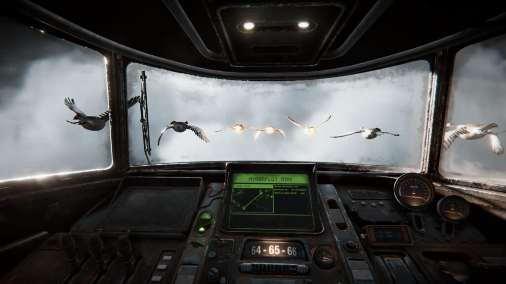 Une des parties que j’ai beaucoup aimées c’est celle avec l’Hydraflot. Ce moyen de transport multifonctions s’adapte à tout type de terrain. Parfois capsule sous-marine, parfois volant, vous devrez trouver la bonne combinaison entre le moteur, les ailes et les flotteurs pour avancer. Sans oublier le klaxon, l’essuie glace et les phares. Ces boutons ne sont pas placés là par hasard ils feront parti intégrante de votre progression !