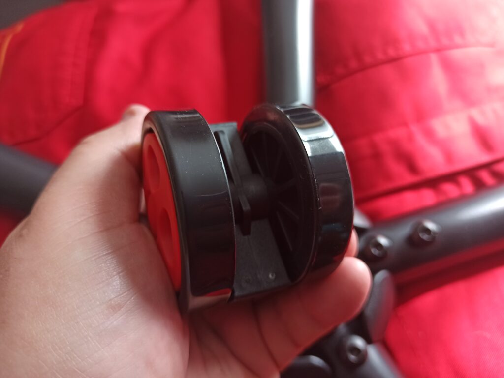 Elle roule bien grâce à ses 5 roulettes sans friction et chacune équipée de 2 disques indépendants l’un de l’autre (photo). Cela lui permet de ne pas accrocher sur toutes les surfaces. Parquet, feutrine, fine moquette, elle se déplace à merveille sur tous les supports. C’est un très bon point que je lui donne.
