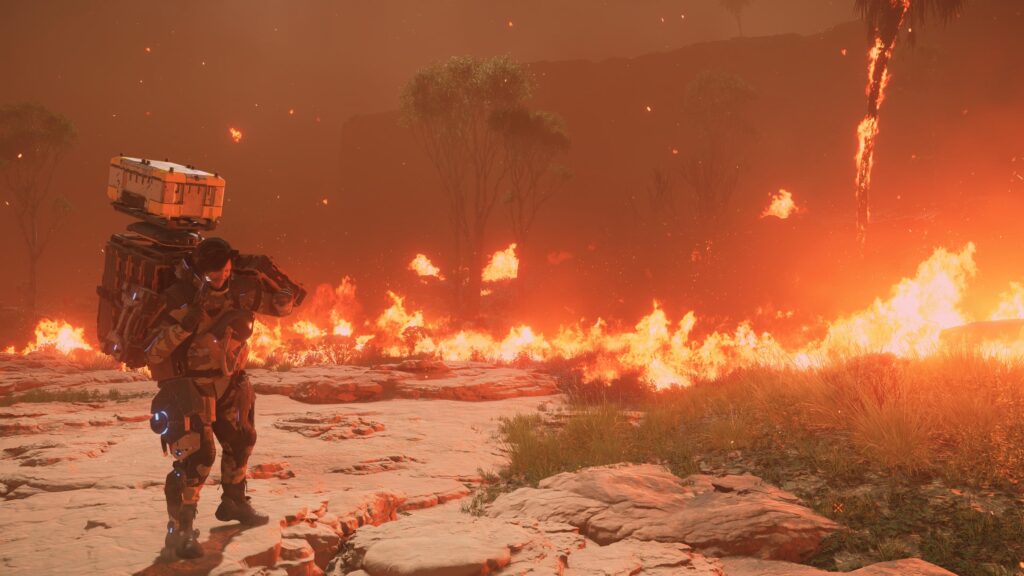Le climat a un rôle important dans le jeu, la pluie peut abîmer nos colis, les quelques levers et couchers de soleil sont tout aussi sublimes, on pourrait ressentir la chaleur émanant des flammes lorsque le feu nous entoure, il y a tellement de scènes magnifiques sur lesquelles on veut juste s’arrêter quelques minutes et admirer ce qui se déroule devant nos yeux. Autant dire que nous avons souvent utilisé le mode photo pour capturer plein de magnifiques moments.