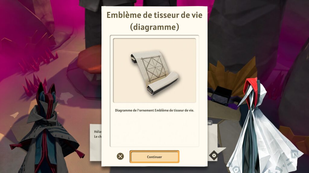 Reprenons le bon chemin pour vous donner encore plus de détails sur comment faire évoluer votre personnage. Pendant votre périple vous allez collectionner des parchemins. Vous allez pouvoir fabriquer des améliorations de compétences ou acheter des cœurs supplémentaires grâce à vos fragments récoltés pendant votre partie. Les parchemins, quant à eux seront échangés contres de beaux visuels et/ou des bandes sonores. Il est donc fortement conseiller de collecter le maximum de fragments, de coffres et de parchemins pour débloquer tous les artefacts possibles du jeu.