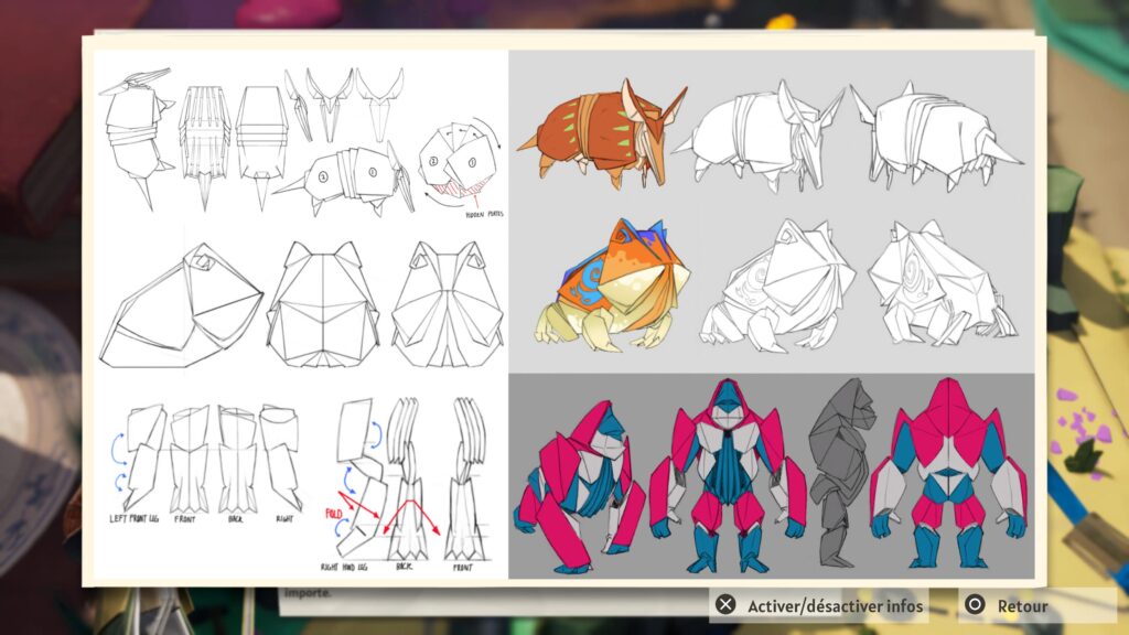 Le chapitre 0 est là pour que vous puissiez vous faire la main et bien apprendre les commandes. Elles sont simples au premier abord mais quand il vous faudra switcher entre la grenouille, le gorille ou bien encore le Tatou, votre dextérité sera mise à rude épreuve. Une particularité commune à toutes vos transformations et vous-même est celle de pouvoir planer en format feuille carré qui sert de base à faire des Origamis. Une idée vraiment très originale et astucieuse qui donne une impression de flotter dans les airs.