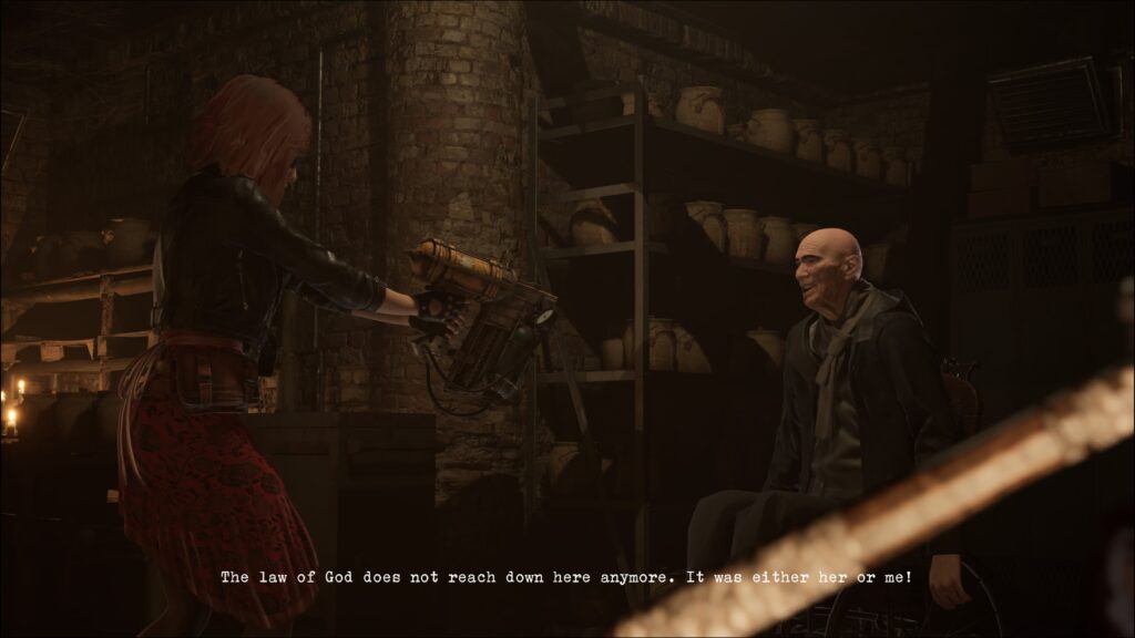 Au fil du jeu, l’histoire devient de plus en plus sombre et l’ambiance rappelle un peu celle d’Eternal Darkness. Des écrits que vous trouverez dans différents endroits, mentionneront une créature des abysses qu’un culte malsain essaie de servir. D’autres personnages, comme par exemple Miguel, se joindront plus ou moins à vous et auront une influence sur le déroulement du jeu. En effet, deux fins sont apparemment disponibles, offrant une rejouabilité possible pour les plus fans d’entre vous. A noter que 3 niveaux de difficulté sont disponibles, de plus simple au plus hardcore avec des sauvegardes limitées.