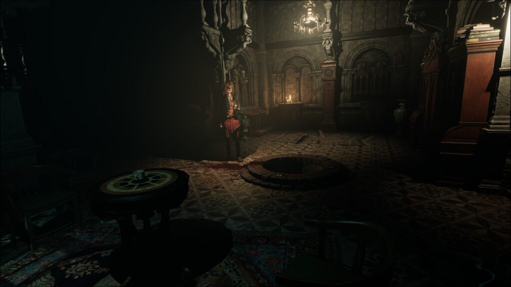Un élément de gameplay intéressant est l’usage de l’obscurité. En effet, si vous passez trop de temps dans une zone d’ombre, une sorte de voile statique et un son terrifiant se manifesteront et trop rester dans cette zone sans lumière signera votre mort ! Heureusement, Caroline possède un briquet qui vous permettra de repousser les ténèbres et d’allumer les bougies et les lampes que vous trouverez sur votre chemin. Cependant, il sera parfois difficile de jongler entre une arme, votre briquet et un objet de quête en pleine obscurité, vous obligeant à faire des choix ou à revoir votre stratégie. En plus de la difficulté des ennemis, ce paramètre sera donc également à prendre en compte lors de vos déplacements.