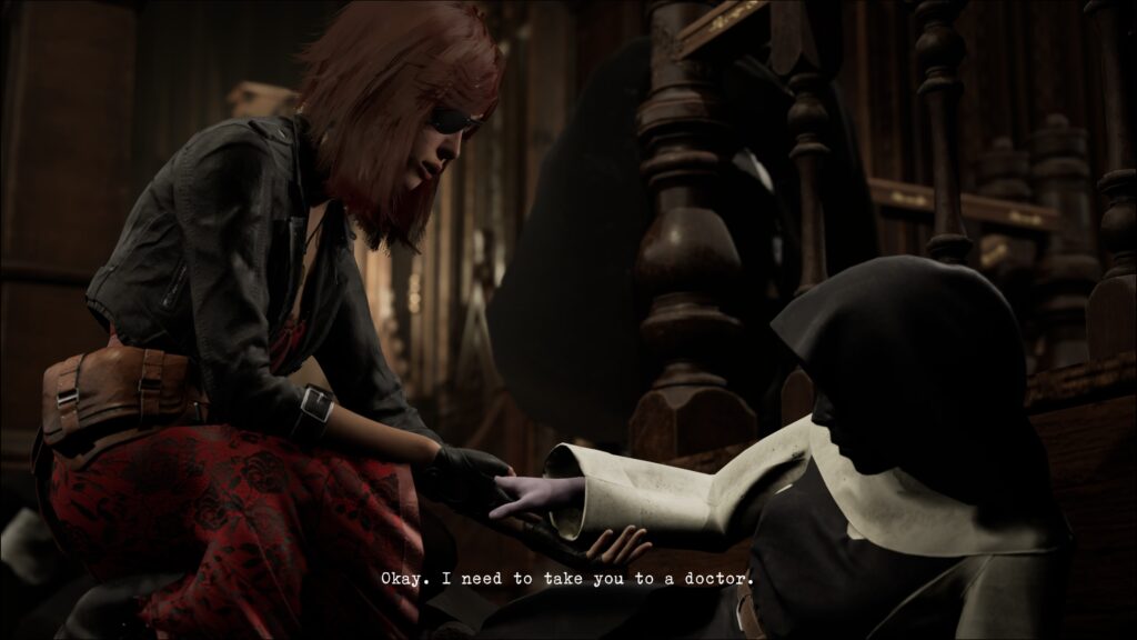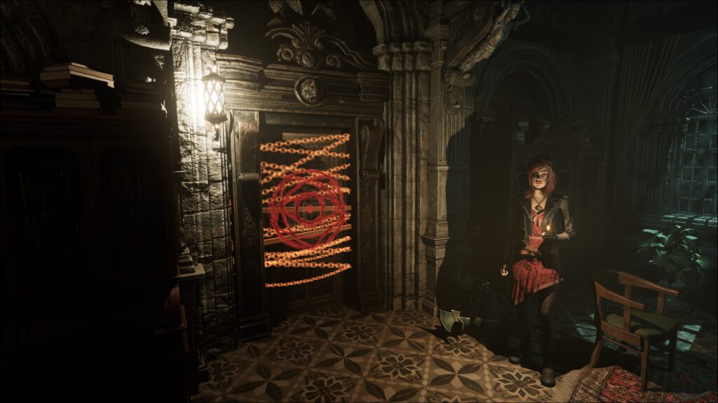 Les premiers pas que vous ferez avec Caroline seront donc dans cette sorte de clinique, vous vous réveillez sur une table d’opération, piquée de seringues et désorientée. Après un douloureux réveil, vous êtes livrée à vous-même dans cette clinique qui a plutôt l’air d’un manoir. Les indices au début sont assez minces mais on comprend assez vite qu’il existe une sorte d’influence démoniaque qui transforme les gens en créatures. Aussi, l’obscurité gagne du terrain et menace de corrompre le monde dans lequel vous interagissez (nous en reparlerons).
