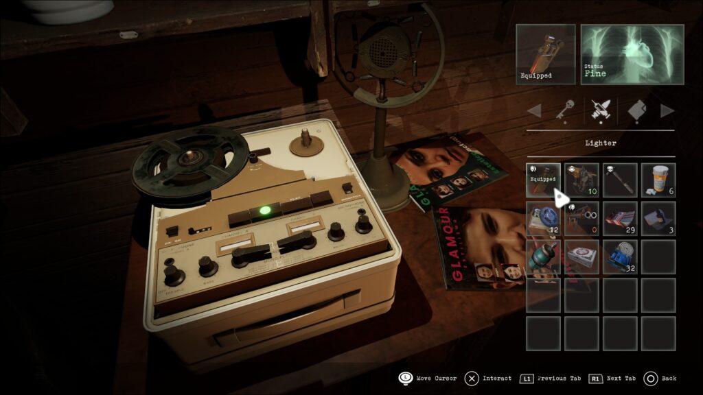 L’inventaire est lui aussi classique et plutôt bien fait, divers objets de quête, médicaments, ustensiles et autres outils viendront s’y entasser pour que vous puissiez progresser dans le jeu. Une carte à trouver dans chaque zone vous donnera un aperçu des lieux et des pièces dans lesquelles vous évoluerez, marquant d’un « ? » les endroits ou quelque chose et à faire pour progresser.