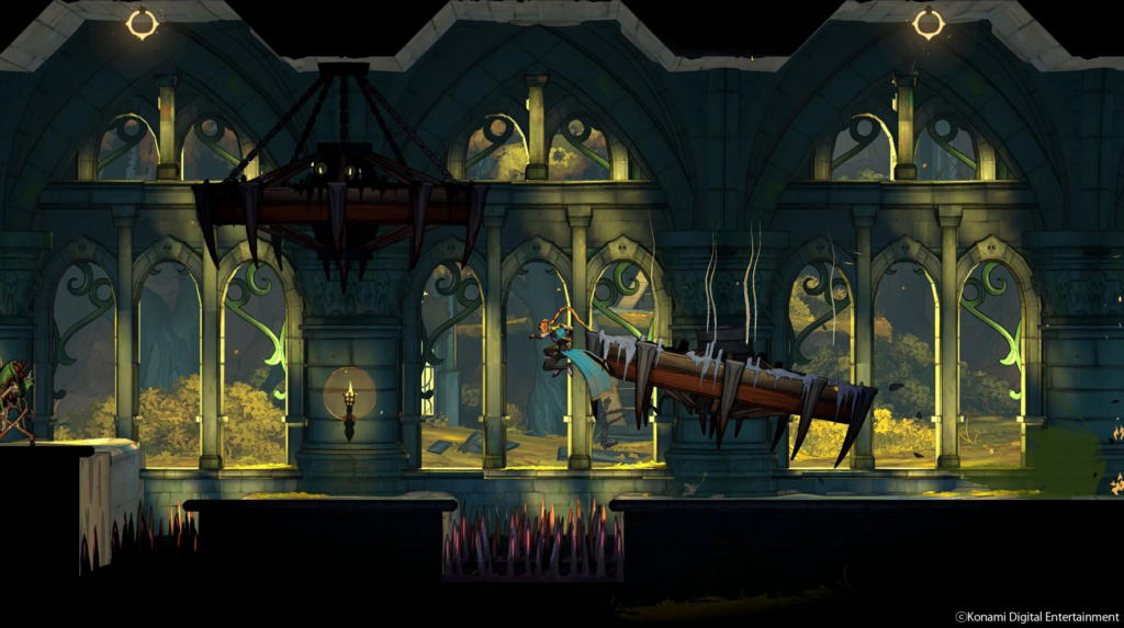 Le fouet, arme emblématique de la série Castlevania, revient avec un nouveau rôle. Plus qu’une arme, il sert désormais d’outil essentiel pour progresser, permettant aux joueurs de se balancer à travers diverses zones afin de découvrir des salles cachées et d’atteindre des zones auparavant inaccessibles. La maîtrise des mécaniques du fouet ouvre également des possibilités de combat inventives, permettant aux joueurs de frapper leurs ennemis depuis des angles inhabituels.