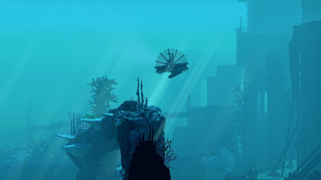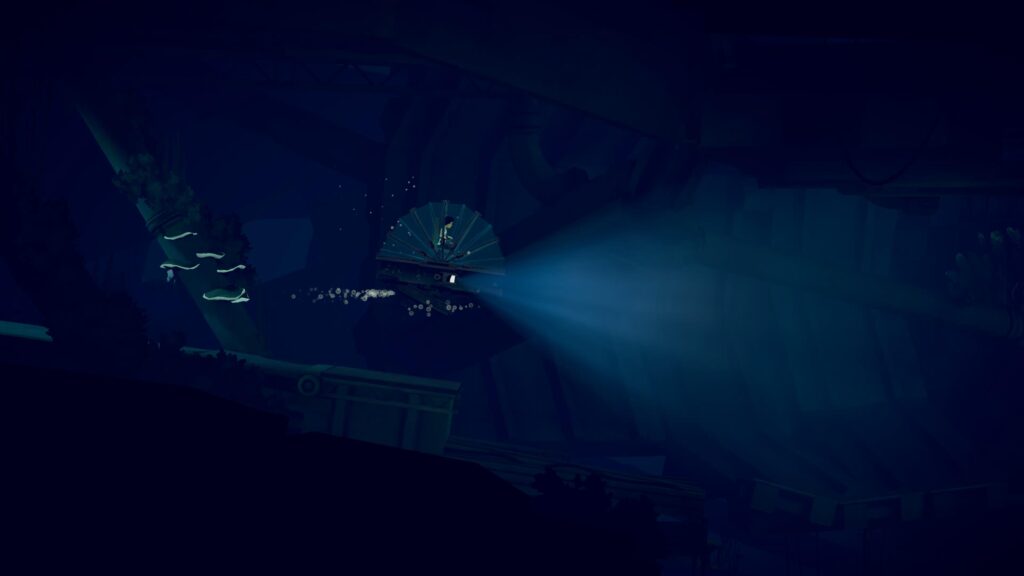 La nage est visuellement ultra propre, et Lana se manie avec douceur et on a envie de partir sous les eaux avec elle pour fouiller les moindres recoins à la découverte de fragments de cartes dissimulés ici et là. Elle va apprendre à gérer les courants, utiliser de nouvelles mécaniques que j’ai adoré ! Reprendre sa respiration comme Sonic à son époque le faisait quand il était à la limite de se noyer … Ces moments passé sous l’eau sont une bouffée d’air tellement le silence donne le sentiment de l’évasion.